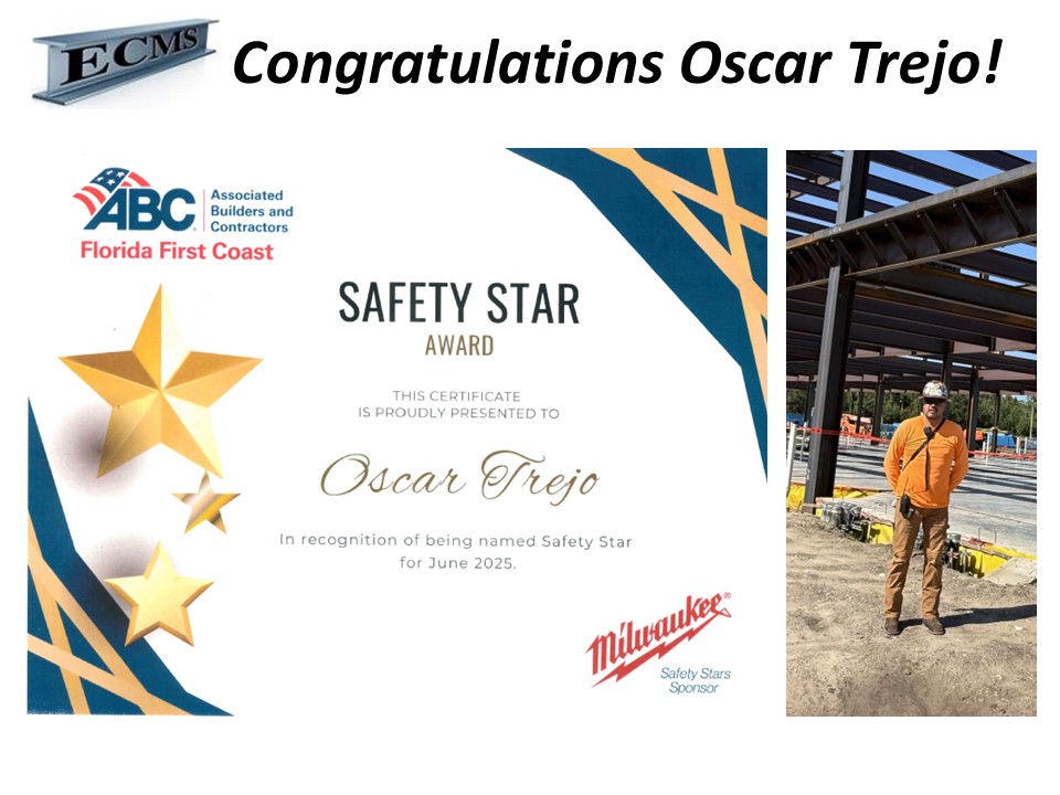ECMS is proud to announce that our foreman, Oscar Trejo, has been awarded the ABC Safety Star Award for June […]